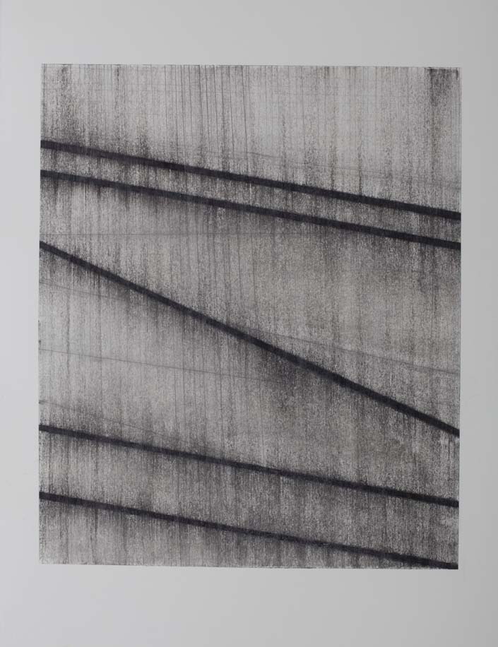 These drawings confirm my obsessions with line and edge. I have a fascination with what happens at the edge of a drawing, a need to make it as important as what is happening within the interior. The wax raises the marks off the surface in a way that is subtly sculptural, or maybe architectural.
