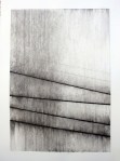 Still related to music however, these are amongst the works that have their genesis in the plucked string drawings using ink, (see John Cage) which were made whilst listening to the music of John Cage. The rhythm and sound of the strings snapping against the paper was a significant element of the process. In formal terms, rhythm and the balance of line and space concerns me so they inevitably reference the golden section and frequently subvert it. The influence of John Cage in no way suggests a relinquishing control over the final image. These drawings are orchestrated, slowly developed, with the measured tones of Bach as much contained within them as the randomness of Cage.